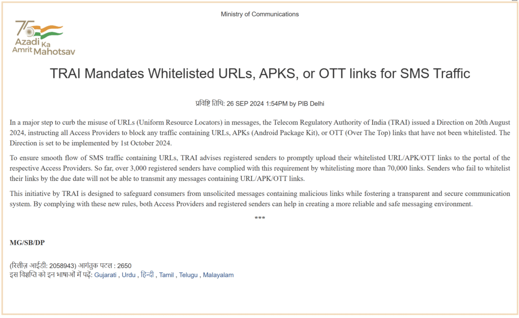 On October 1, 2024, TRAI mandated strict “Whitelisting” directives for all URLs sent via SMS in India. The goal was to curb spam and fraud, but for legitimate businesses, it created a technical blockade.